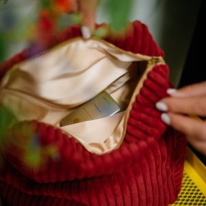 Do toreb sztruksowych dołączona jest saszetka wykonana z tego samego materiału.